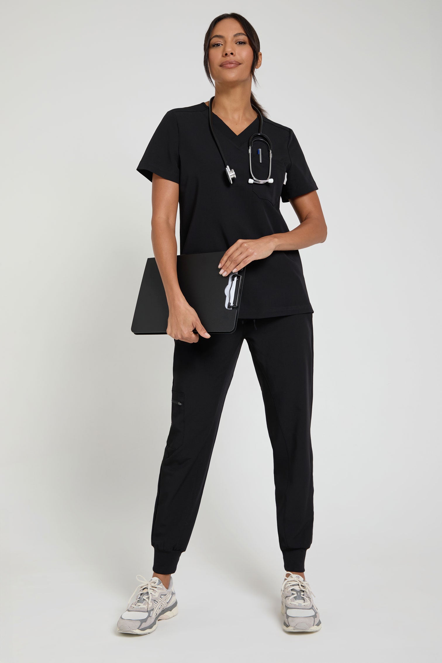 Introducing the Women's One Pocket Scrub Top in Ceil Blue. Designed for comfort and functionality, this top features a classic V-neck and a convenient chest pocket. The soft, breathable fabric ensures all-day comfort, making it perfect for healthcare professionals. Stay stylish and efficient on the job.