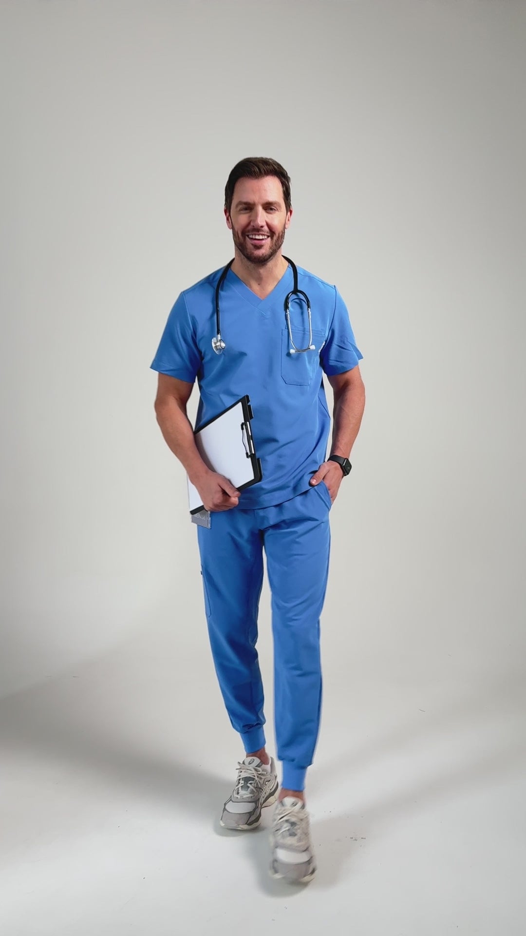Introducing the Men's Three Pocket Scrub Top in Ceil Blue. This top combines functionality with style, featuring three spacious pockets for all your essentials. Crafted for comfort and durability, it's perfect for long shifts. Stay professional and organized in this classic Ceil Blue scrub top.
