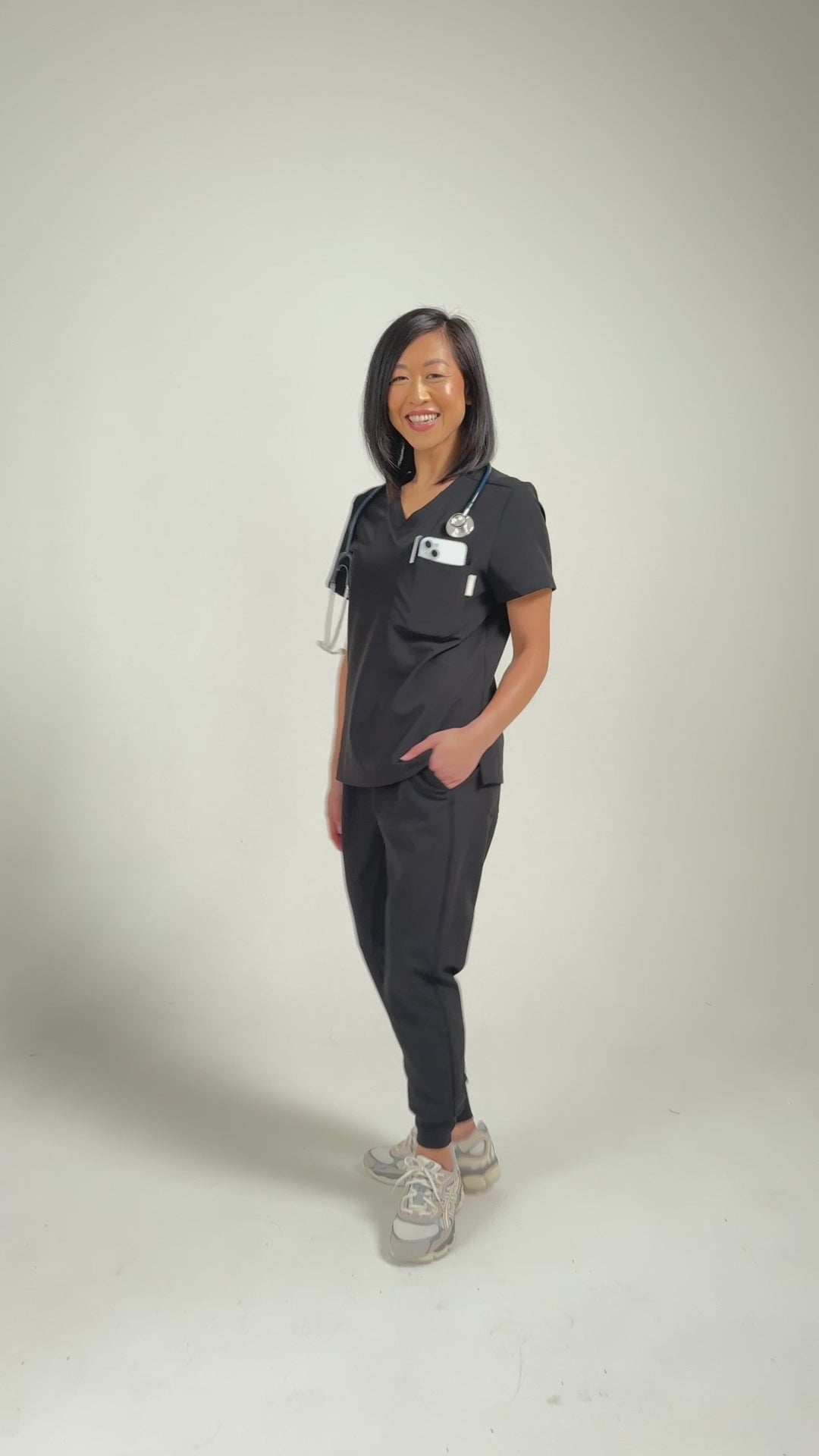 Introducing our Women's Petite Black Jogger Scrub Pants, designed for comfort and style. These joggers feature a tailored fit perfect for petite frames, with an elastic waistband and ankle cuffs for ease of movement. Ideal for long shifts, they combine functionality with a sleek, modern look.